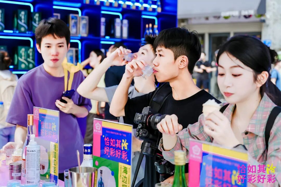 以青花汾酒為基酒的特調(diào)雞尾酒吧臺前,更是人頭攢動,年輕人手捧“海邊探戈”“南國紅豆”等特調(diào)創(chuàng)意飲品,在微醺中暢聊,構(gòu)成了永慶坊的生動一景,讓行業(yè)感慨,汾酒正在“沉浸式、體驗式”圈粉年輕世代。