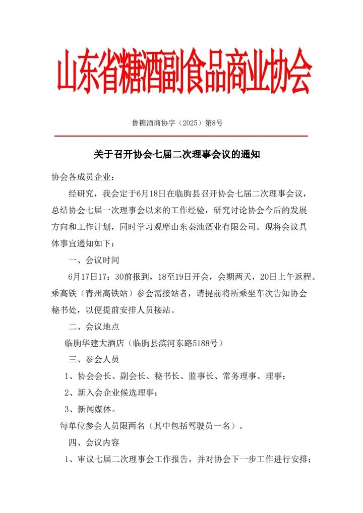 關于召開協會七屆二次理事會會議的通知