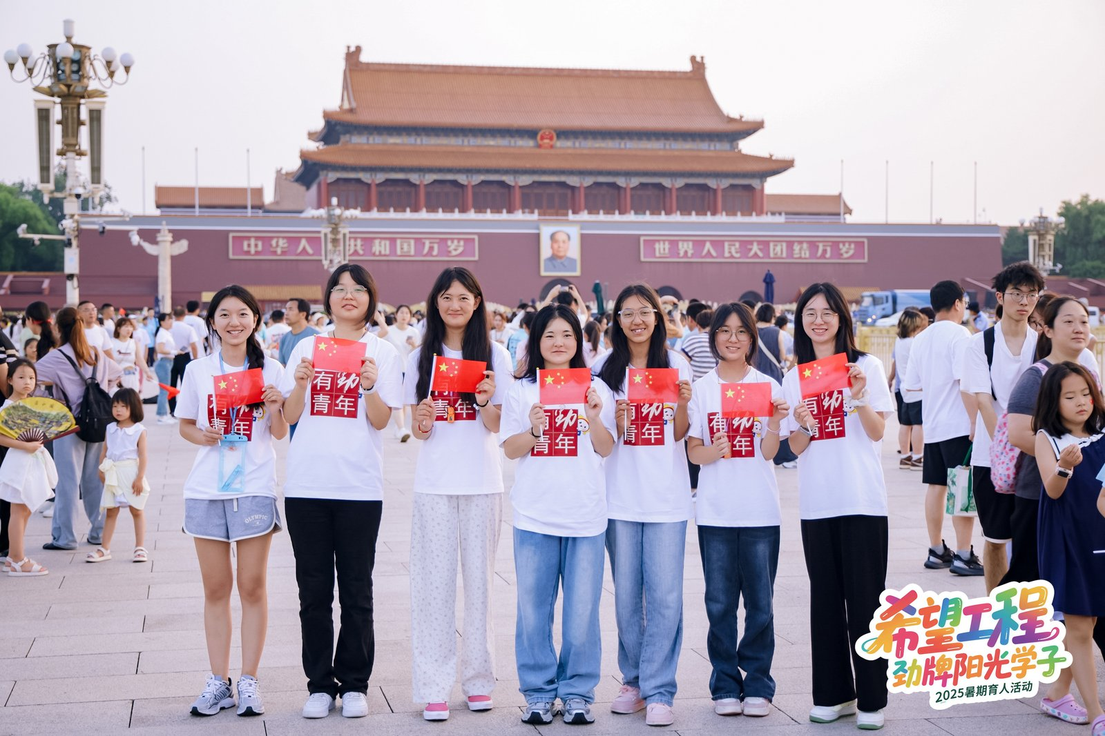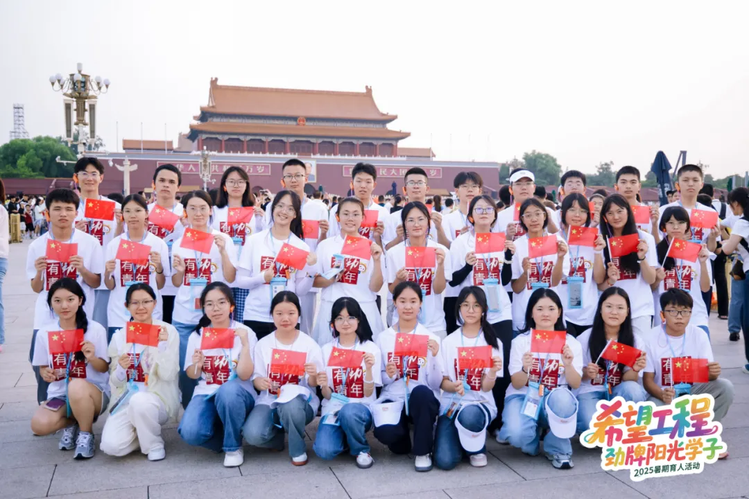 7月22日清晨,天安門廣場舉行升旗儀式,伴隨著初升的朝陽和雄壯的國歌聲,五星紅旗冉冉升起。來自內(nèi)蒙古、湖北、廣西、四川、貴州、新疆等6個省(自治區(qū))的33名“希望工程·勁牌陽光學(xué)子培養(yǎng)計(jì)劃”學(xué)生代表,在國旗下莊嚴(yán)肅立,凝神仰望,他們將參加為期4天的“希望工程·勁牌陽光學(xué)子培養(yǎng)計(jì)劃”暑期實(shí)踐育人活動暨2025年助學(xué)項(xiàng)目啟動活動。