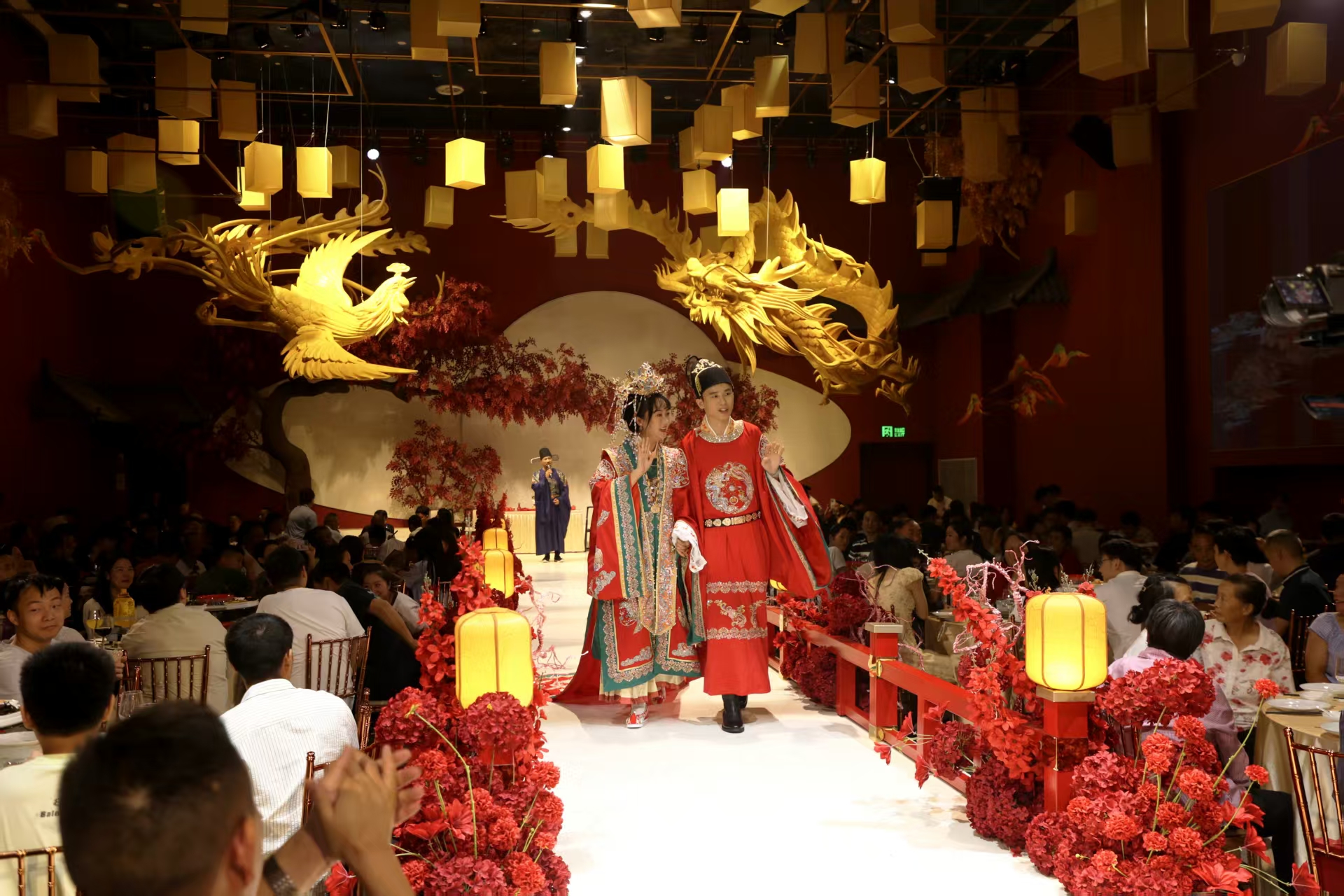 十一期間,大冶市天鵝禮宴中心,掛滿紅綢的大廳彌漫著桂花香。藏族姑娘索朗卓嘎戴上鳳冠,穿上繡有并蒂蓮裙擺的鳳冠霞帔,眼里滿是歡喜。“以前總聽長輩說‘緣分天定’,而我的緣分是‘崗位’牽來的。”她笑著轉頭,正好對上一旁的新郎鄭自國的目光。2025年國慶節,這對在勁牌相識相知的藏漢青年正式結為夫妻。至此,勁牌已有2對藏漢員工喜結連理。
