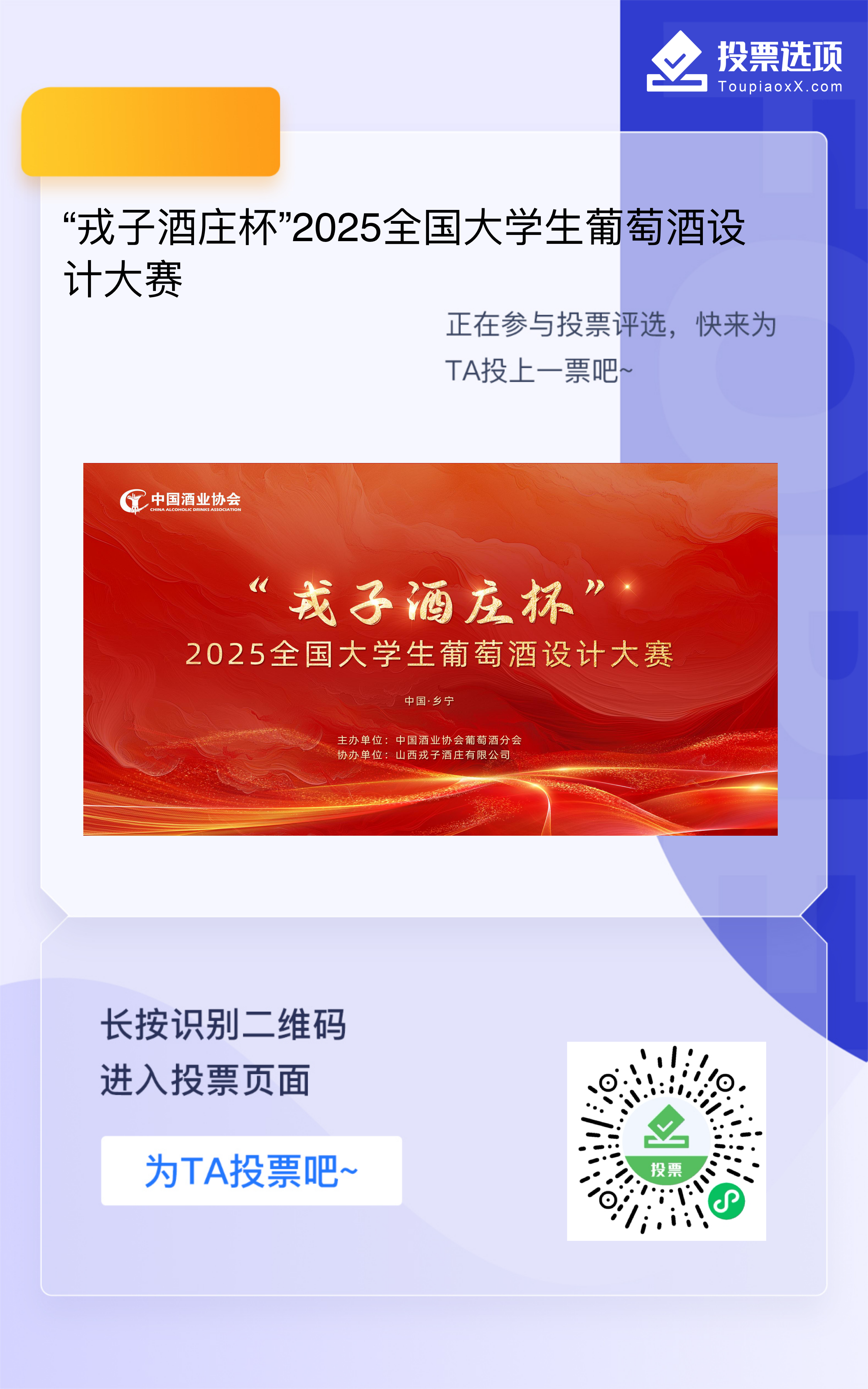 近日,由中國酒業協會主辦、山西戎子酒莊冠名的“戎子酒莊杯”2025全國大學生葡萄酒設計大賽正式進入線上投票環節。自今年3月賽事啟動以來,吸引了來自全國各地高校的廣泛關注與熱情參與。此次大賽不僅是對青年創意力量的一次集中展示,更是推動中國葡萄酒產業年輕化、時尚化轉型的重要舉措。