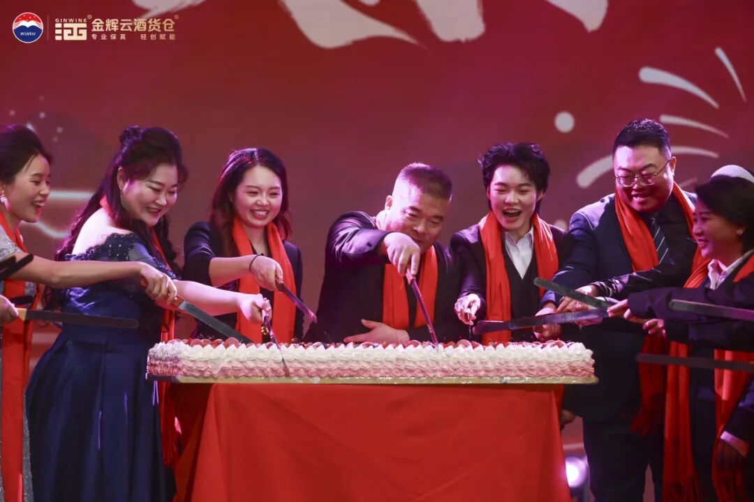 作為當晚的重要篇章,“茅臺1935之夜”將喜文化與盛會氛圍完美融合。在溫馨的生日視頻與全場祝福中,金輝酒業(yè)十九周年生日蛋糕被推上舞臺,在全場嘉賓與金輝員工共同唱響的生日歌聲中,真摯的祝福匯聚成河,共同見證金輝酒業(yè)十九周歲生日的喜悅。這一刻,笑容與溫情被定格,感動與期許在此交織,凝聚起金輝酒業(yè)同心前行、再續(xù)華章的堅定力量。