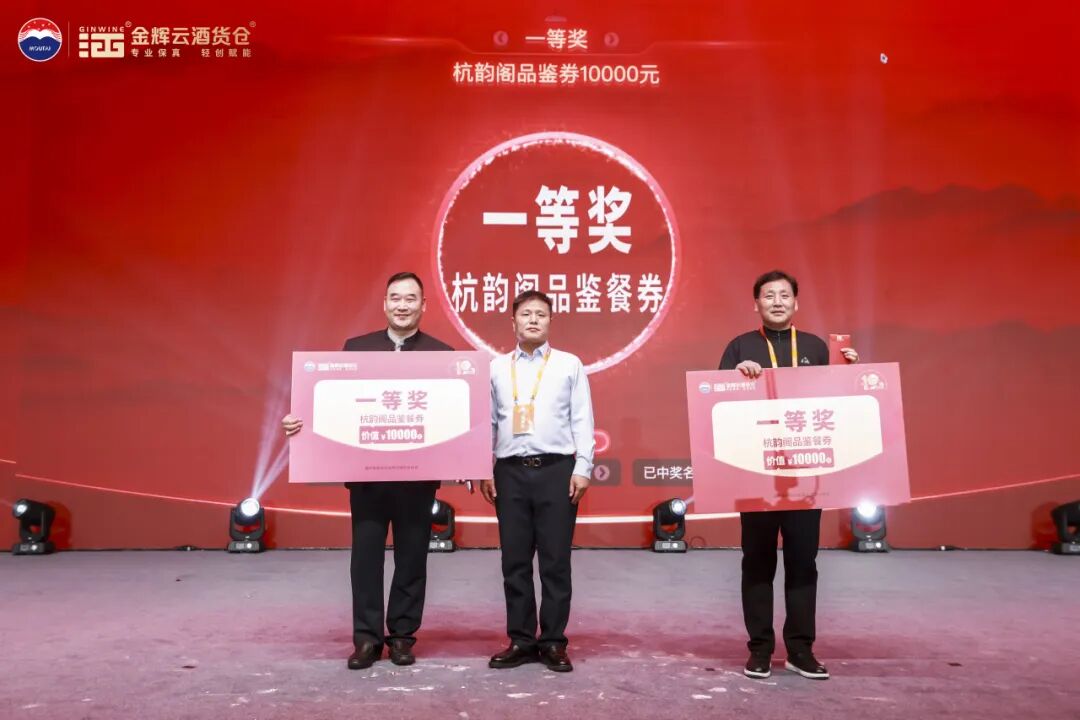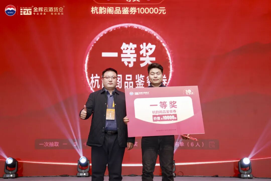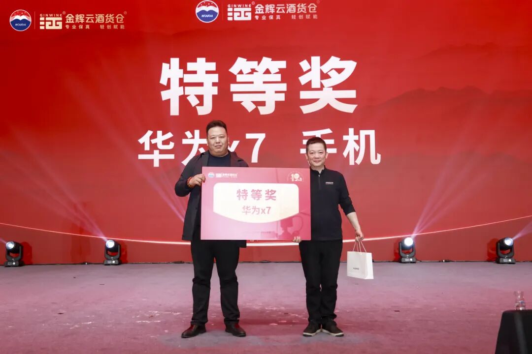 為回饋現(xiàn)場嘉賓,晚會設置了多輪重磅抽獎環(huán)節(jié)。獎品包括華為X7手機、價值10000元的杭韻閣高端品鑒券、價值2199元的憶江南套票,華祥苑精品茶葉、名仁蘇打水等,每一份獎品都不僅是一件禮物,更是金輝酒業(yè)對合作伙伴長久以來支持的一份厚重謝意與美好祝愿。